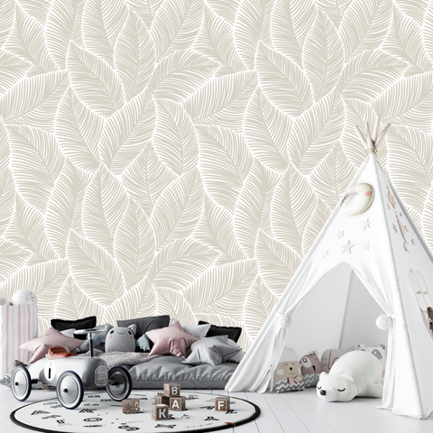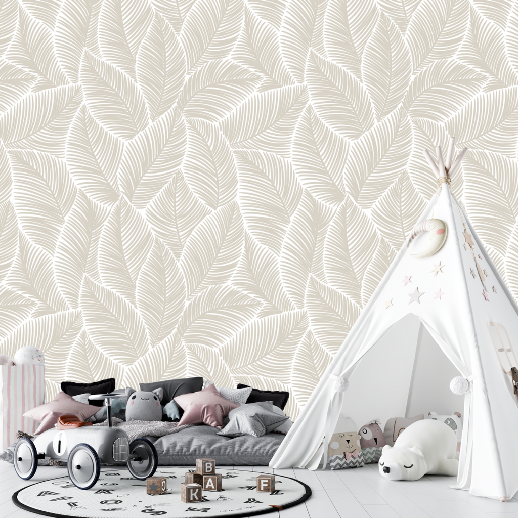 Le motif de feuilles finement dessinées, dans un beige doux et aérien, crée une atmosphère naturelle propice au repos et à l’éveil. Sa palette subtile permet de composer un décor intemporel qui accompagne l’enfant dès ses premiers mois, tout en s’intégrant facilement dans une décoration moderne, scandinave ou minimaliste.