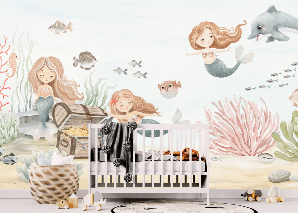 Faisons entrer la magie de l’océan dans la chambre avec notre papier peint marin fille de la collection « Papier peint Marin » Le Petit Intissé.