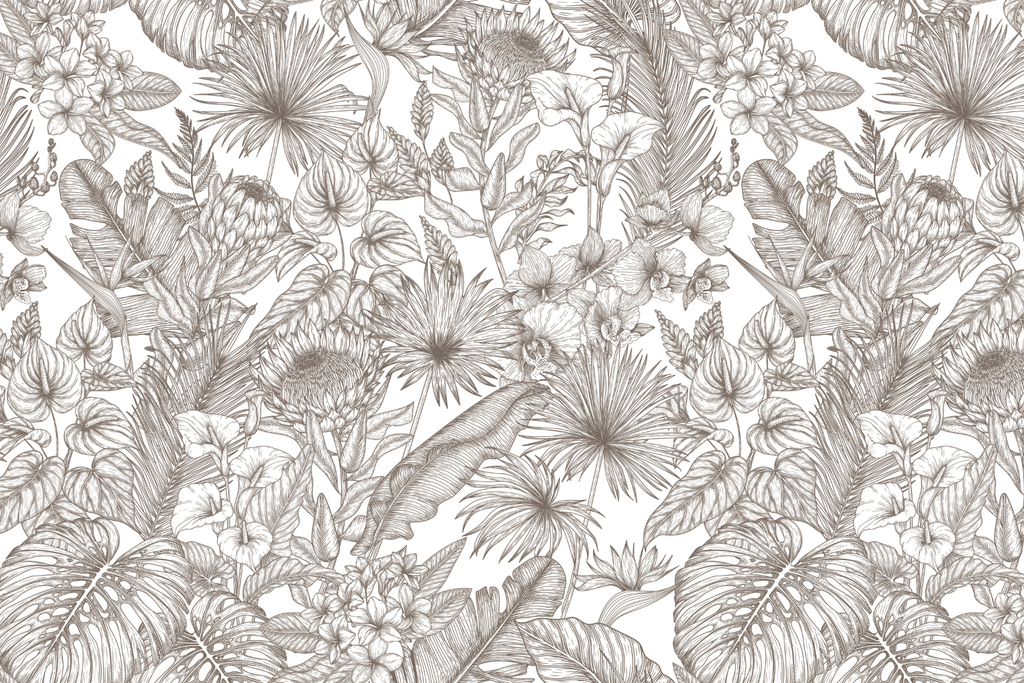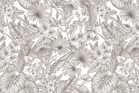 Ce modèle au motif botanique finement dessiné capture la beauté des feuillages tropicaux dans un style graphique et épuré. Les nuances subtiles de beige et de brun s’harmonisent avec délicatesse pour offrir un rendu intemporel et apaisant, idéal pour transformer une chambre adulte en un espace sophistiqué et naturel.
